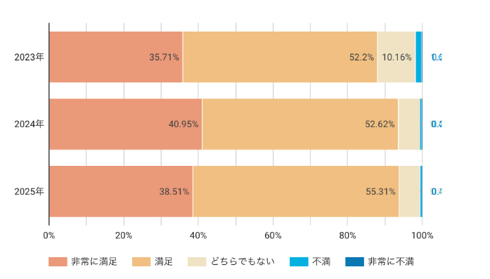 顧客満足度アンケートの結果、リカバリーの訪問看護サービスに「非常に満足」「満足」と回答した方は、2024年同様に約94%となりました。